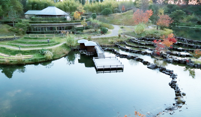 公園は、けいはんな学研都市(関西文化学術研究都市)建設を機に整備され、ことし27年を迎えます。年月を経て、従来からある永谷池周辺の里山と、新しく配置した橋や建物が溶け合い、ここにしかない風景を形づくっています。
