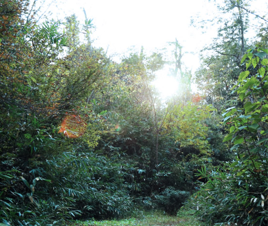 山手の道に入ってみましょう。ちょっと上りのハイキングコースですが、丸太の階段が整備され、安心して歩けます。「ひかりの峠」を登りきり、木漏れ日の中を下る足元は野生のツツジの群生地です。冬は樹々と語らう静かな森ですが、春に向かう日々、山野草のかれんな花々が目を楽しませてくれるでしょう。