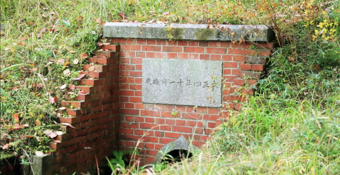 この永谷池は江戸期の記録にも残るため池で、土地の記憶を伝えるモニュメントが点在します。池の北西端あたり、トンネル状の小さな煉瓦組と出合いました。以前、このあたりは京都の暮らしを支える穀倉地帯でした。精華町を南北に貫く煤谷川から農業用水を引くため、隧道2本の大工事に着手したのが大正4(1915)年。地域の誇りでもある歴史を伝えるため、当時の記念碑を移設し、隧道の出入口を復元したそうです。