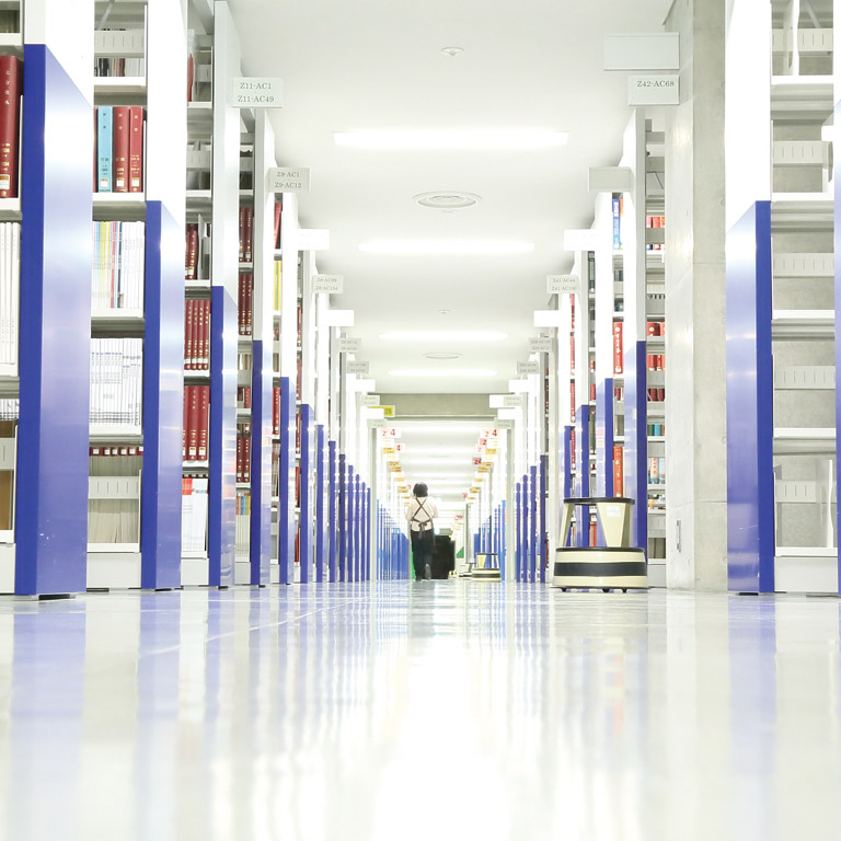 全体の所蔵は膨大です。図書約280万点をはじめ、新聞や雑誌等を含め1700万点。2年前には、本1冊を3センチと考えた場合に約500万冊が収蔵できる書庫棟も完成しました。研究施設の多いけいはんな地域にあって、調査研究に役立つ資料が豊富なのが特長です。館ではたくさんの人が働き、資料の収集や保存とともに、「資料提供」「図書館協力」「電子図書館」などの業務にあたっています。