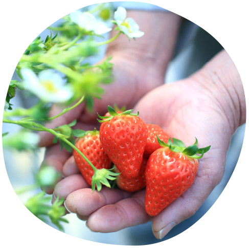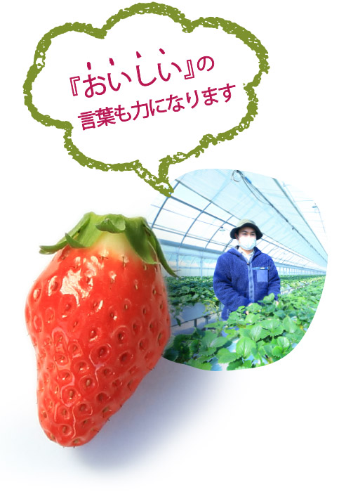 数年前には若い担い手も入社しました。最年少の井上拓さん(28)は農園でのボランティアを経て、異業種からのチャレンジ。栽培は気候にも左右されながら、春から夏は苗場での育苗、秋の植え替えなど1年がかりです。でも、「世話した分だけ、良いいちごが実る。新しい技術も採用しながら、安心安全ないちごづくりを試みています。」と井上さんは笑顔です。