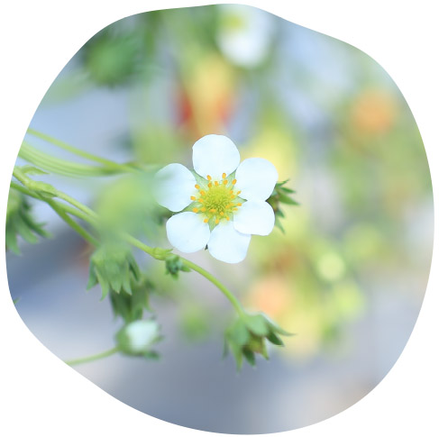 高設栽培なので棚からいくつもの葉柄が垂れ下がり、こどもたちは目の前で熟した実を探して、摘むことができます。農園のいちごは現在、あきひめ(章姫)、紅ほっぺ、恋みのり、よつぼしの4種類。主にいちご狩りで活躍するのは甘味たっぷりの「あきひめ」です。果皮が柔らかいため、摘んでそのままほおばれば、ジューシーな果汁が口いっぱいに広がります。