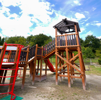 今年、幼児用遊具が増え大型遊具が新しくなりました。木のぬくもりもしっかり感じます。休日子供が列を作って順番待ちの大人気。遊具は、遊ぶと楽しく、ついつい時間と疲れを忘れて遊んでくれる子供達の最強大好きアイテム、しかも、夜早くパタンと寝てくれるママのお助けアイテム!遊具の種類が増えたことで、楽しさも疲れ?も倍増します!