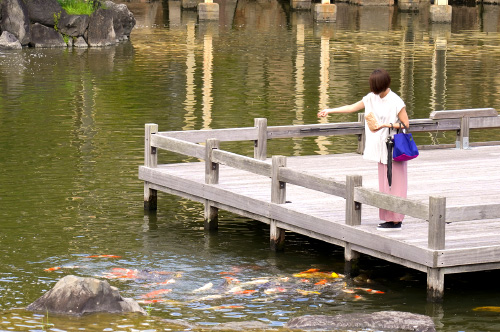 まず迎えてくれるのが巨石群。子供達は別世界に迷い込み、自分が小さくなった気分で迷路の中を冒険しているように感じること間違いなし。池には多数の飛び石が規則的にも不規則的にも設置されています。子供達は、その飛び石を見事にぴょんぴょん渡りながら楽しみます。ハラハラする親の心、子知らず。それどころか、親も一緒に夢中になってしまうかもしれません。池の鯉に餌をあげると、大きな鯉がわれ先にと必死に餌に食らいつく迫力に驚くことでしょう。子供達の興奮が止まりません。私達大人とはきっと見えている世界が違うのかもしれません。水景園は回遊式日本庭園ですが、子供目線で見ると、さながらアドベンチャー施設気分でしょう。