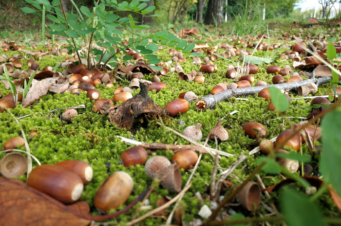 また、子供達も、四季の移り変わりを、ここなら存分に楽しめます。これからのシーズン、真っ赤に色づく紅葉を子供達と一緒に楽しめる最高のスポットです。さらに、この秋は“どんぐり拾い”を。この公園には、7種類のどんぐりの木があるそうです。