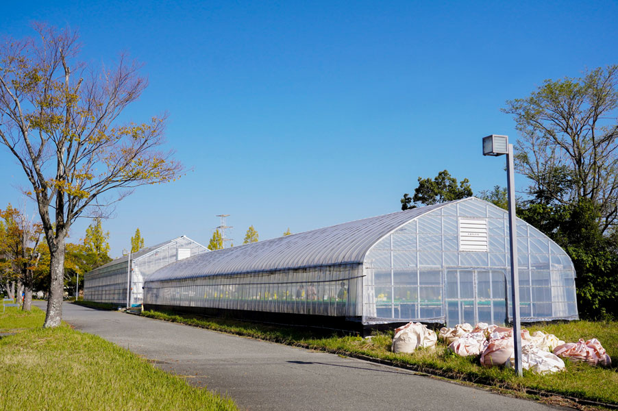 株式会社国際電気通信基礎技術研究所(ATR)の一角にそのビニールハウス群はあります。背景には丘陵が広がり、思わず深呼吸してしまう景色です。