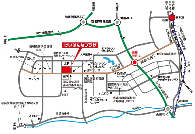 | アクセス | 祝園駅バスのりばから 学研奈良登美ヶ丘駅行きで 「ATR(けいはんなプラザ東)」バス停下車すぐ 学研奈良登美ヶ丘駅バスのりばから 祝園駅行き 「けいはんなプラザ」バス停下車すぐ |