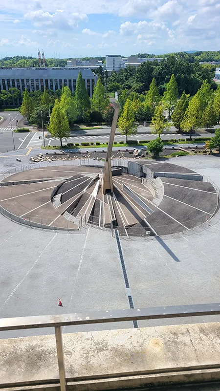 ギネス登録の世界一大きな文字盤の日時計。日本の3地域の時間が地面の段差でわかる仕掛け。(京都府精華町と長崎県佐世保市と岩手県宮古市)