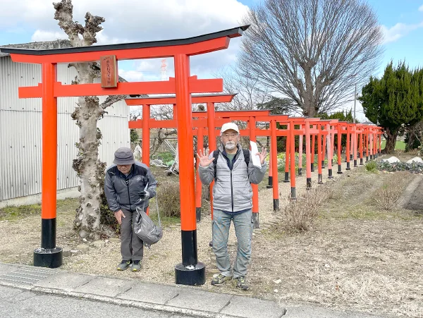 若王寺の山門若王寺に続いて次に鞍岡山の方に向かいます。若王寺の山門を出て集落内の南北の路地を突き当りまで南行し、西に折れると鳥居と階段が。参道の先にある170段余りのかなり険しい階段を上るとそこは鞍岡山の峰。階段を上がりきり、右手に行くと鞍岡神社の社殿があり、左手の参道の先には鞍岡山古墳群の1号墳が現れます。鞍岡山の森は駅近くにも関わらず珍しい鳥や木々に生息する虫たちも多く自然豊かに鎮守の森が保たれているのが体感できます。精華町の北端エリアのオアシスといったところでしょうか。