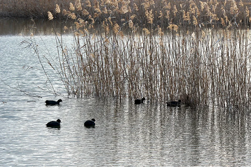 池にはマガモなど、冬には水鳥が集まります。