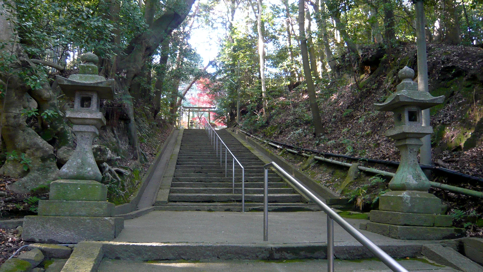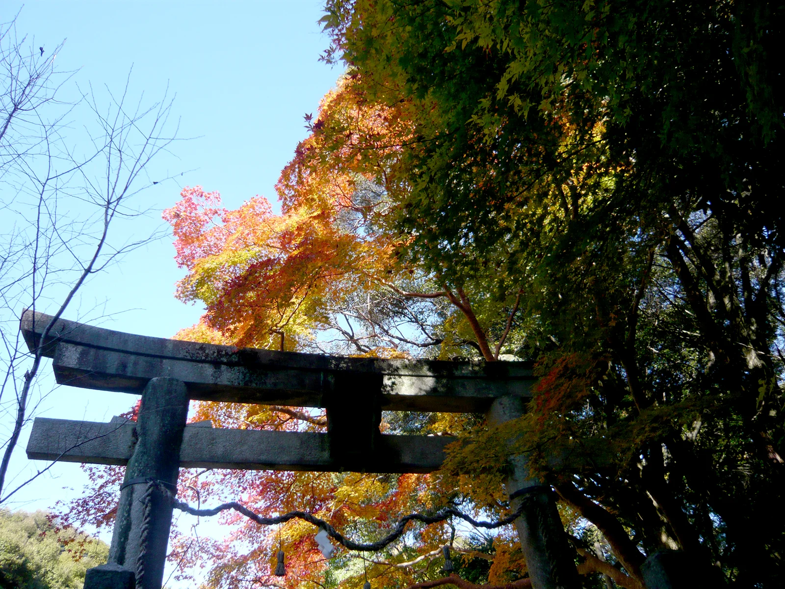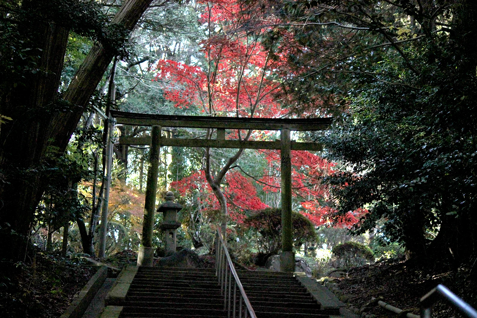 山の東側の高く長い石段を上りきると、紅葉の美しい樹木に囲まれた鞍岡神社です。
