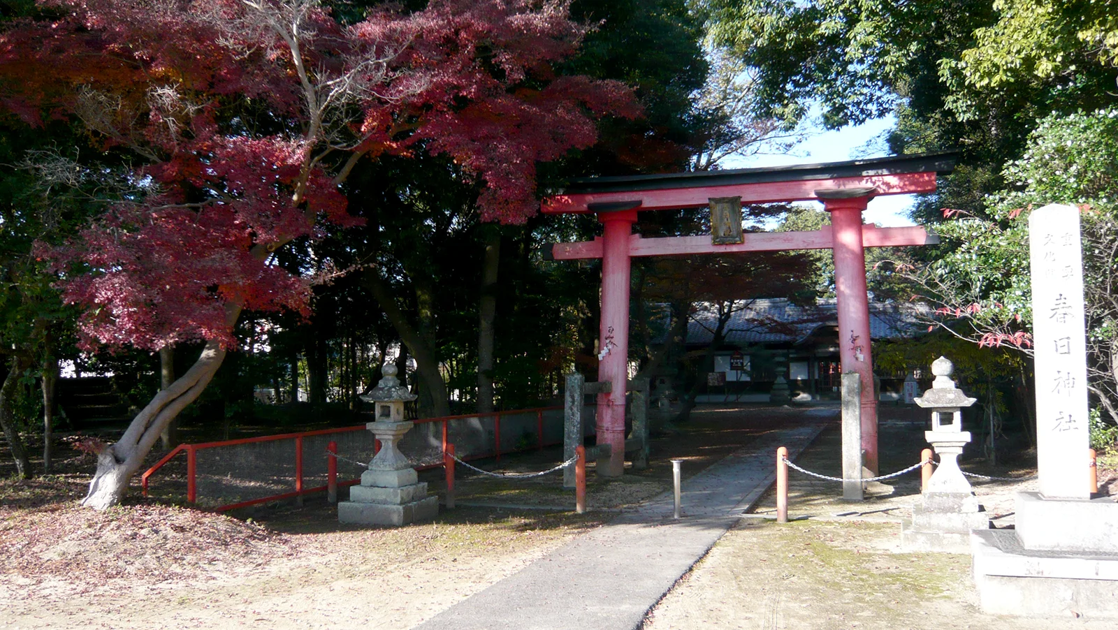近鉄狛田駅北側から煤谷川沿いに東へ歩くと春日神社に着きます。