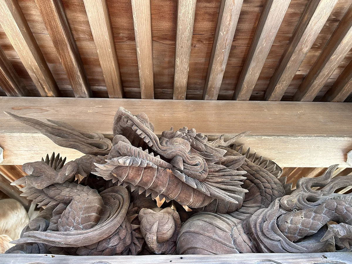 さらに、狛犬に加えて社殿の上には立派な龍の彫刻があり、その龍が抱く玉は、見る人によっては光って見えることがあるそうです。