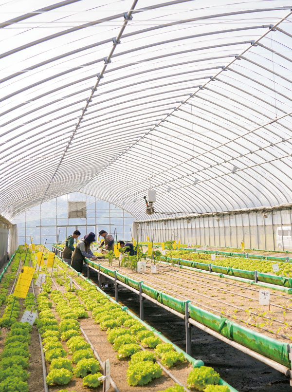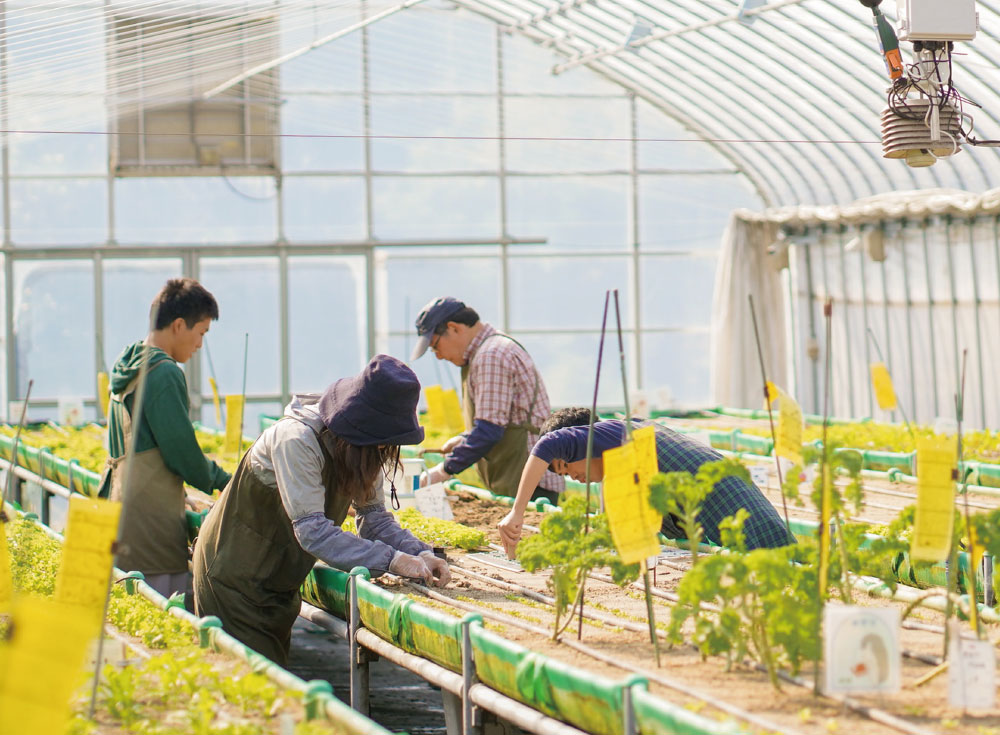 精華町のいちごには、作り手たちの手間暇と愛情がつまっています。広いハウスでは果実が次々と熟し、あなたの手で摘まれるときを待っています。