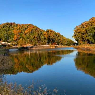 人々が憩う広場から、谷あいの小川沿いに梅林を経て竹林の小径へ。こどもたちの歓声もやがて遠く、樹々の葉擦れと鳥の声が森へと誘います。