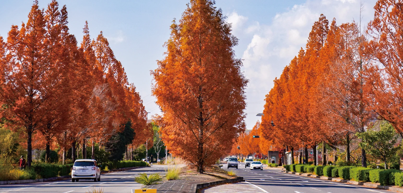 精華町の秋の象徴といえば「都市景観100選」にも選ばれた精華大通りのメタセコイア並木道。並木道の端に位置するけいはんなプラザのアートな日時計レーザー光線が、秋の夜空に放たれています。さらには「文化の秋」を体験できるホールも。精華町の秋を彩る自然と科学技術のアート、そして文化を奏でるホール、ぜひ秋の精華町で新たな発見と感動を体験してください!